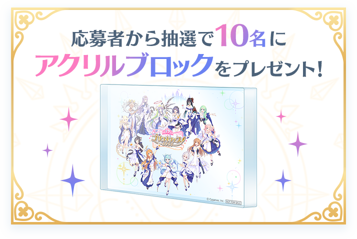 ご応募いただいた方の中から、抽選で10名様に「プリコネフェス2025キービジュアル柄アクリルブロック」をプレゼントします。