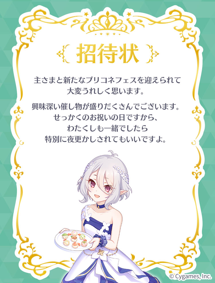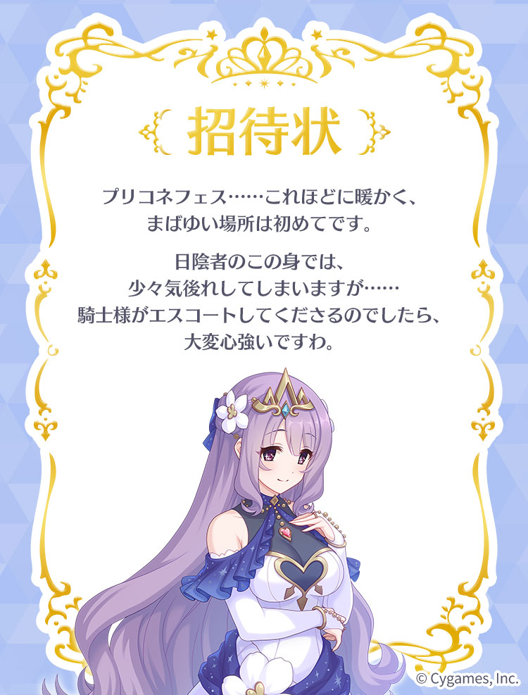 特設ページ(https://fes.priconne-redive.jp/invitation/)へアクセスして、あなたを招待してくれるプリンセスに会いに行きましょう!